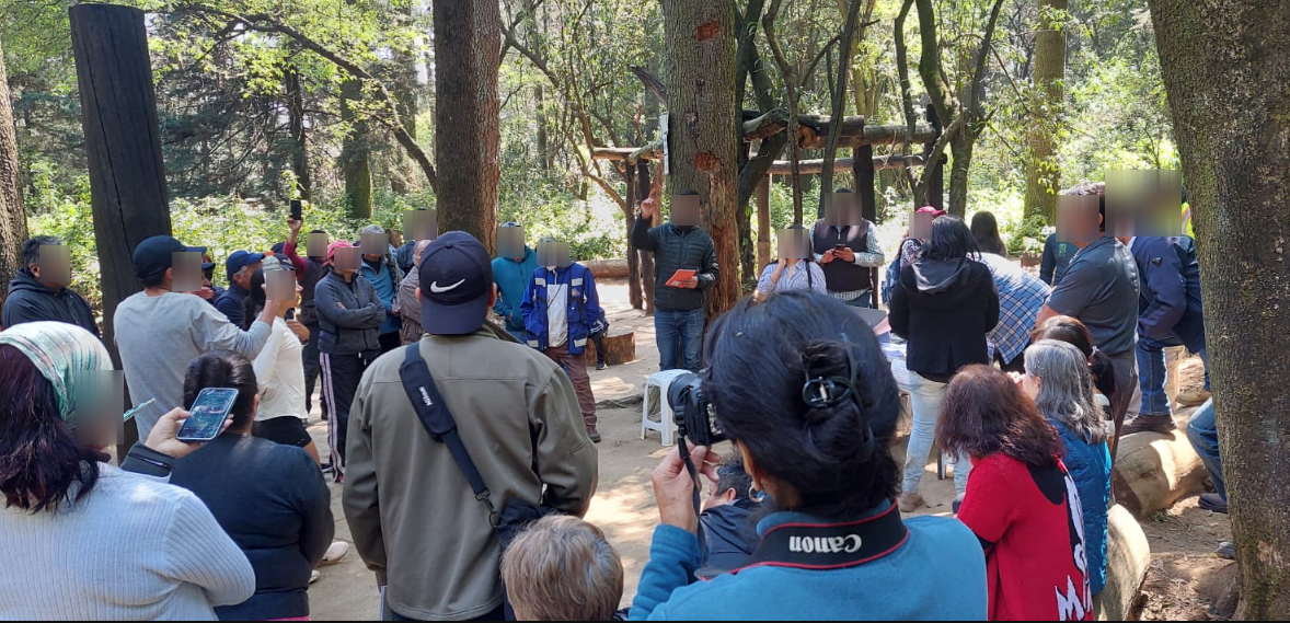 Resultados: Se presentó a los asistentes el plano de la primera propuesta, resultado del recorrido del 28 de marzo. Esta propuesta fue rechazada debido a la posible inviabilidad para plantar árboles debido a las características del terreno. Por otro lado, algunos vecinos sugirieron otro sitio de plantación, ubicado en el acceso al poblado Mina Vieja, en el camino Acopilco. Este punto fue visitado junto con algunos de los vecinos asistentes, y se acordó presentar la propuesta el domingo 6 de abril a las 10:00 a.m. en el mismo lugar.